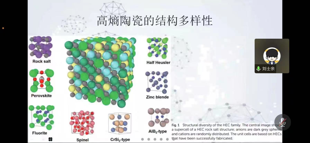 近日,PA捕鱼官方网站“格物讲堂”在腾讯会议展开。公司刘士余老师应邀为公司师生做了题为《高熵陶瓷的第一性原理热力学研究》的学术报告。公司老师、研究生、本科生共50余人参加此次学术报告。