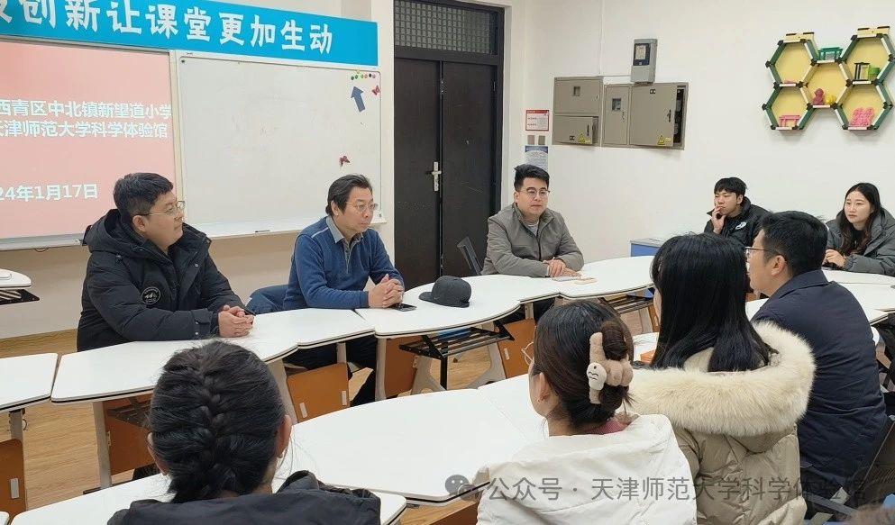 为进一步落实天津市大中小思政一体化建设要求,推进PA捕鱼官方网站科普基地实践育人建设,1月17日上午,天津市西青区中北镇新望道小学叶鸿琳董事长一行20余人到科学体验馆开展交流活动。PA捕鱼官方网站科普基地指导教师孙佩雄、实验中心曹猛和辅导员刘通参加此次交流活动。