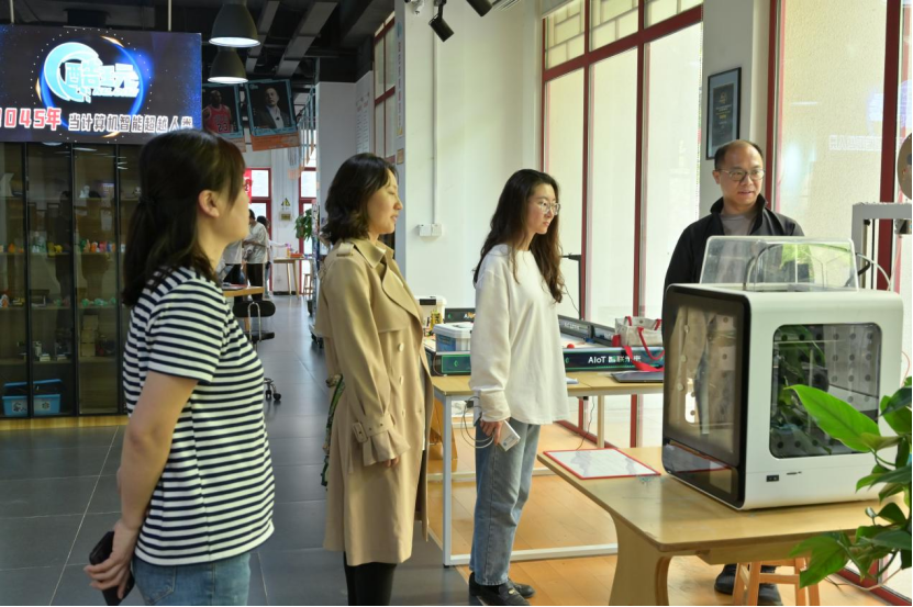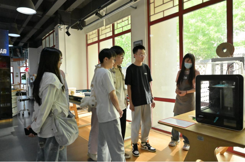 接着,公司老师和同学们在企业员工的带领下,来到了酷玩科创工坊,参观了3D打印、激光切割等多样先进设备。同学们动手体验相关仪器。