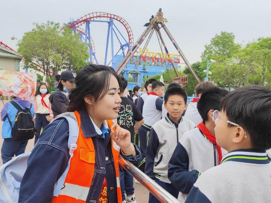 党员们走进场馆,携手大江路小学师生共同走进天津方特欢乐世界。通过体验“东方神韵”、“魔法城堡”、“大闹水晶宫”、“海盗船”、“旋转木马”等游乐设施,讲解游乐项目背后蕴藏的物理原理,使党员们挖掘出更多教学案例素材,引导小员工在游玩中领悟科技变迁,在快乐中发现科学就在身边。
