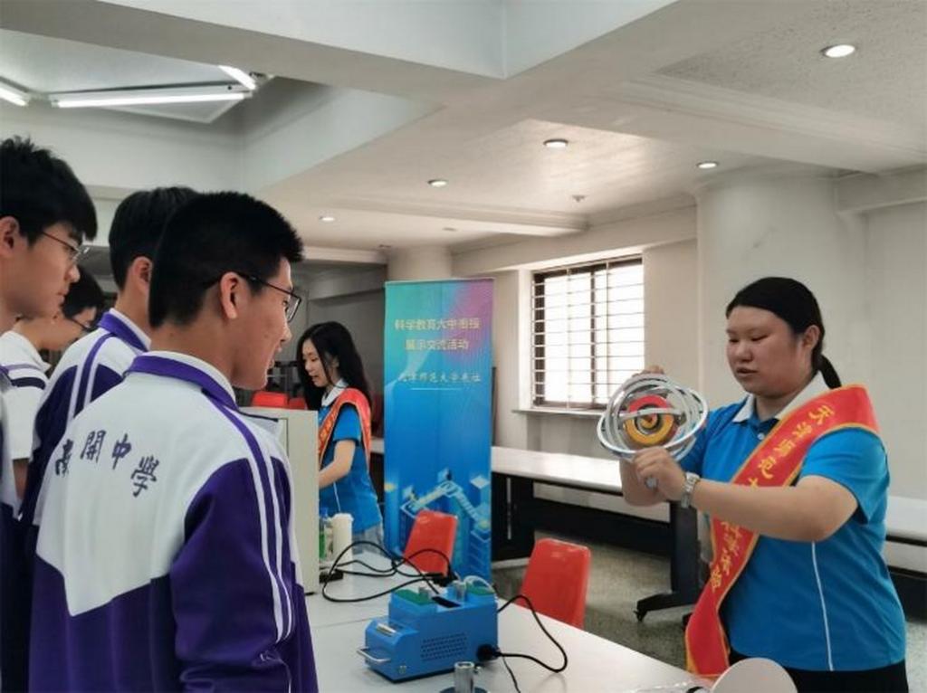 党员们走进南开中学,通过茹可夫斯基凳、角动量守恒转台等先进的实验教学仪器为高一高二年级员工带来了一场热烈的头脑风暴,使中员工感受身边科学之美。