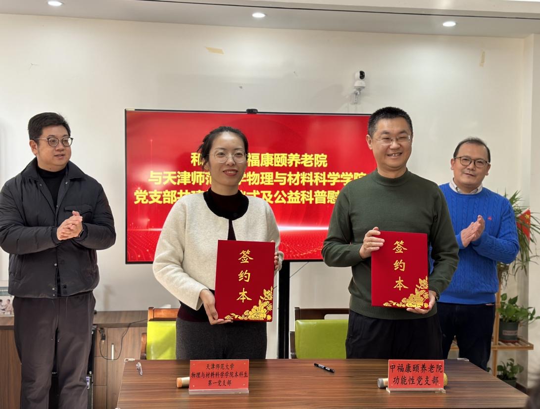 11月26日,PA捕鱼官方网站师生代表走进和平区中福康颐养老院开展“科普慰问、健康敬老”的公益科普慰问活动,同时公司物理学本科生第一党支部与养老院功能性党支部签署了共建协议。