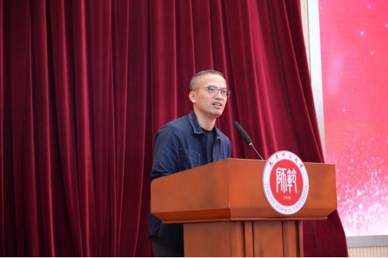 研究生导师、班导师代表张波老师作为教师代表发言,他用丰富的实例为同学们送上了温馨提醒。他强调,老员工活首先要学会自律,做好从高中到大学的顺利衔接;第二是要明确目标,有了目标就有了前进的方向;第三学习要有计划性,合理规划,积极行动,才能使自己的老员工活充实精彩。