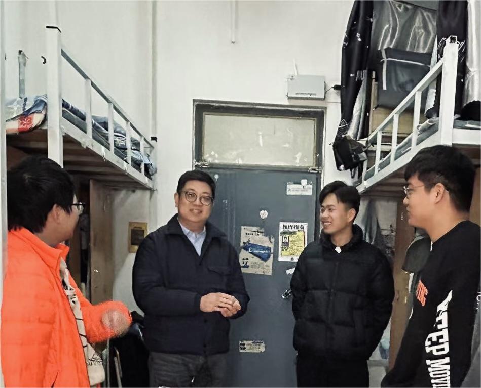 为深入了解员工思想动态和学习生活状况,提高员工的宿舍安全意识,营造温馨和谐的寝室文化。12月8日,公司党委书记张伟带队深入员工宿舍走访调研,与同学们亲切交流,送去冬日温暖和关怀。辅导员刘通、刘立志陪同走访。