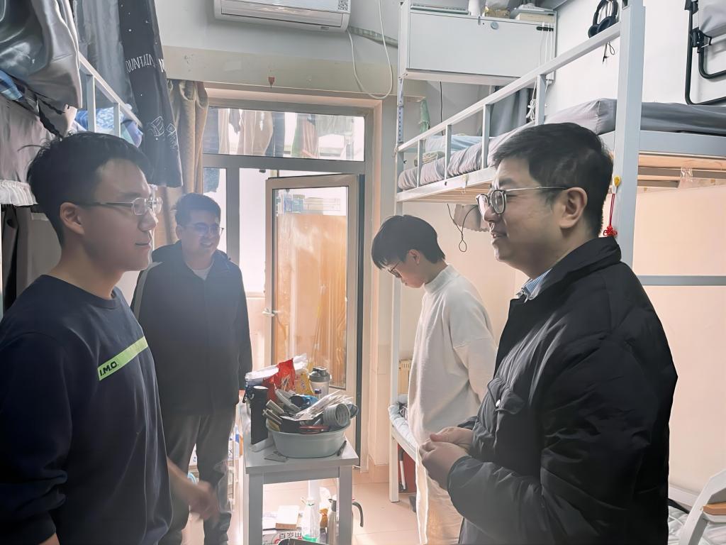 在员工公寓26号楼走访过程中,公司领导老师与2023级本科生进行了面对面、点对点沟通交谈。张伟勉励员工,作为新时代物理青年,要抓住人生中最宝贵的大学时光,励志勤学、刻苦磨炼,坚定不移听党话、跟党走,在激情奋斗中绽放青春,努力成长为担当民族复兴大任的时代新人。张伟还向同学们了解了校园生活情况,嘱咐同学们近期寒潮来袭,要及时根据天气变化增加衣物,注意防寒保暖。希望同学们要相互关照,尤其是天津籍员工要主动帮助外省市同学了解天津、融入天津,更加热爱我们求学的城市。